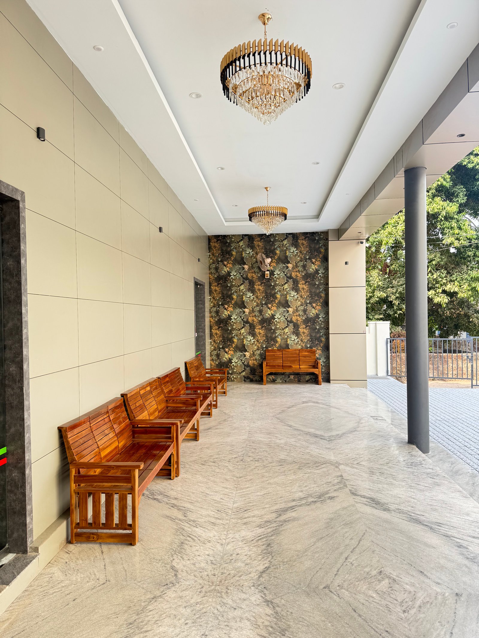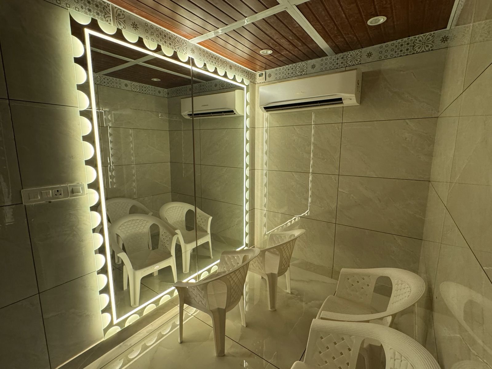 The highlight of the venue is its spacious main hall, which can accommodate up to 1,300 guests. Built with a robust steel framework, it ensures durability, while its marble flooring and tiled walls enhance hygiene and cleanliness. Guests can enjoy superior seating with ergonomically designed, high-quality wooden chairs featuring a stylish red finish.