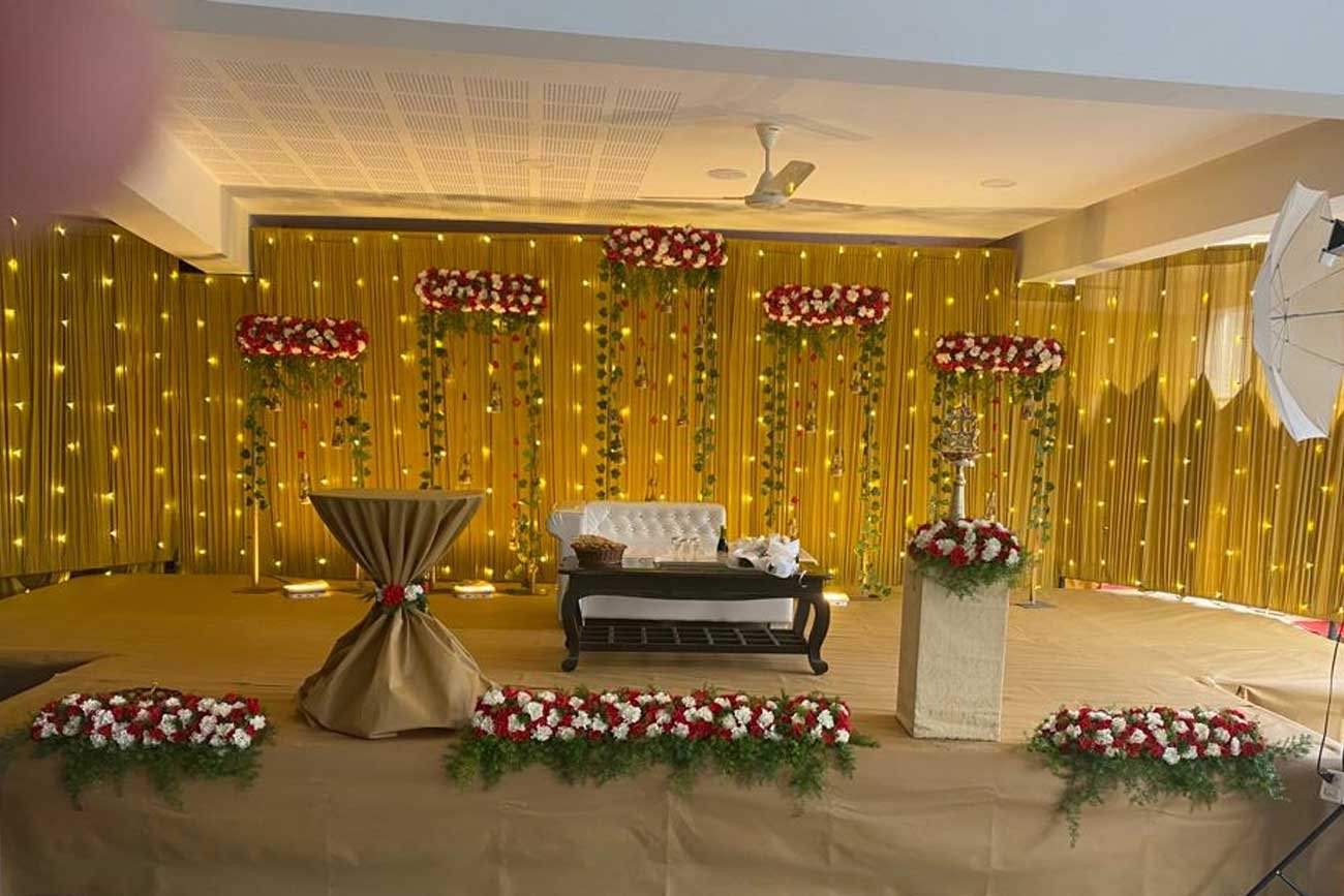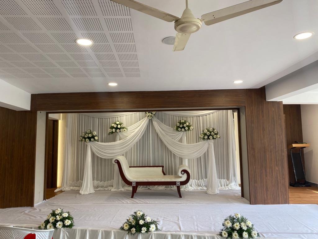 A key attraction is the expansive stage, one of the largest in Kerala, designed to suit diverse event needs. It includes adaptable frames for lighting, cameras, and projectors, with a customizable size to match client preferences. The elevated balcony ensures an optimal view, enhancing the overall experience for attendees. Additionally, the stage can be transformed into a traditional Kalyana Mandapam upon request, providing a perfect setting for weddings and cultural ceremonies.